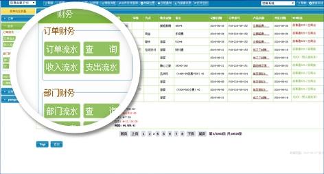 财务分类:订单财务、部门财务、产品财务、出纳汇总。